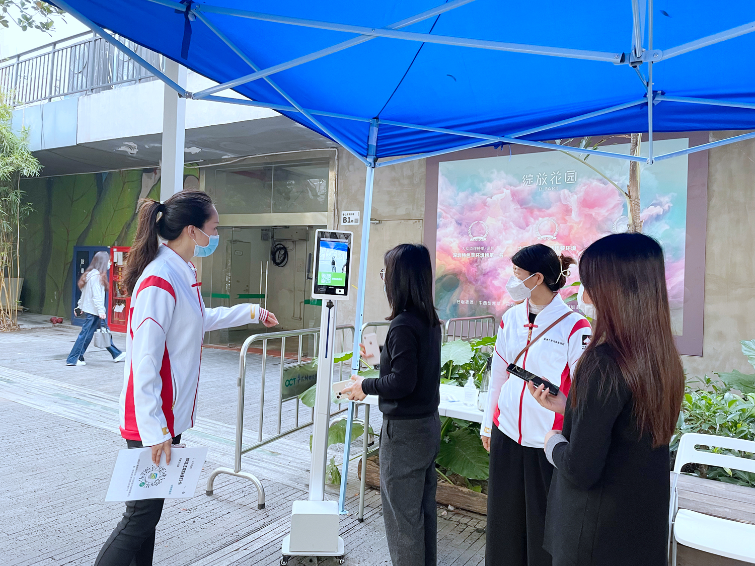 3月1日,深圳千里馬裝飾集團義工隊身著防護服,佩戴面罩和手套,在南山區深云村抗疫服務點引導居民有序進行核酸檢測,協助居民進行大規模檢測登記操作,核點每組檢測人數,一一掃碼查驗身份信息。檢測工作一直持續到當晚10點半,累計服務人數上千人。3月2日,深圳千里馬裝飾集團義工隊在南山區華僑城創意文化園協助園區開展掃碼、測溫、查驗健康碼等工作,嚴格把關每一位進出人員的健康碼,為上萬人工作的園區創建健康環境。長達數小時的站立,也沒有停歇,他們用行動踐行社會責任,展現千里馬人“奮斗·愛·分享”的企業精神。