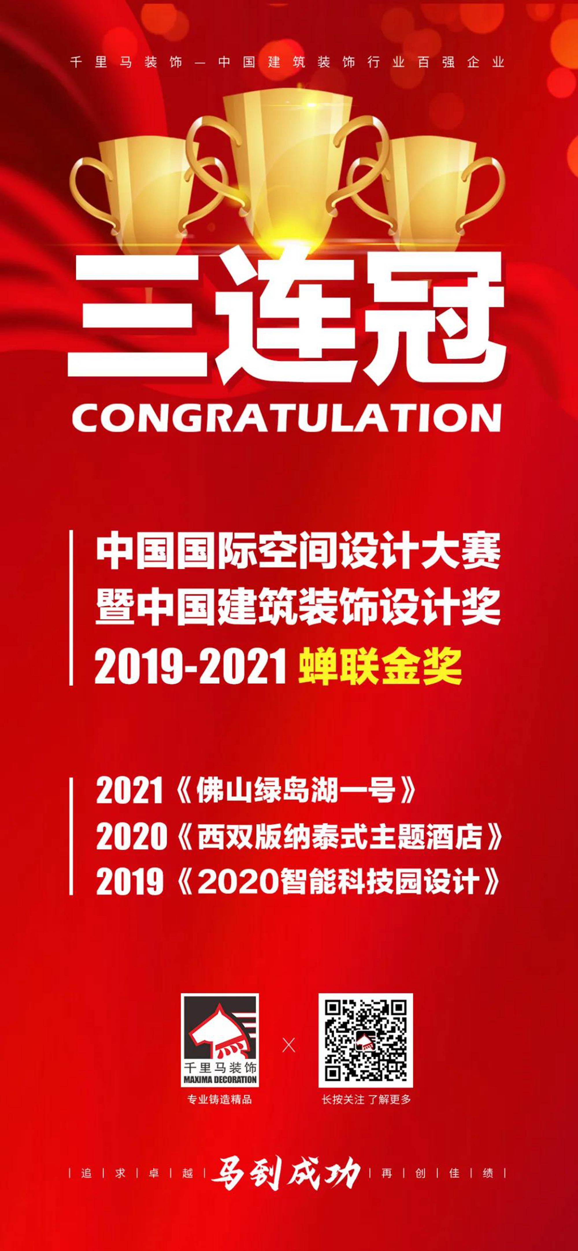 三連冠!千里馬裝飾蟬聯2019-2021中國建筑裝飾設計“金獎”