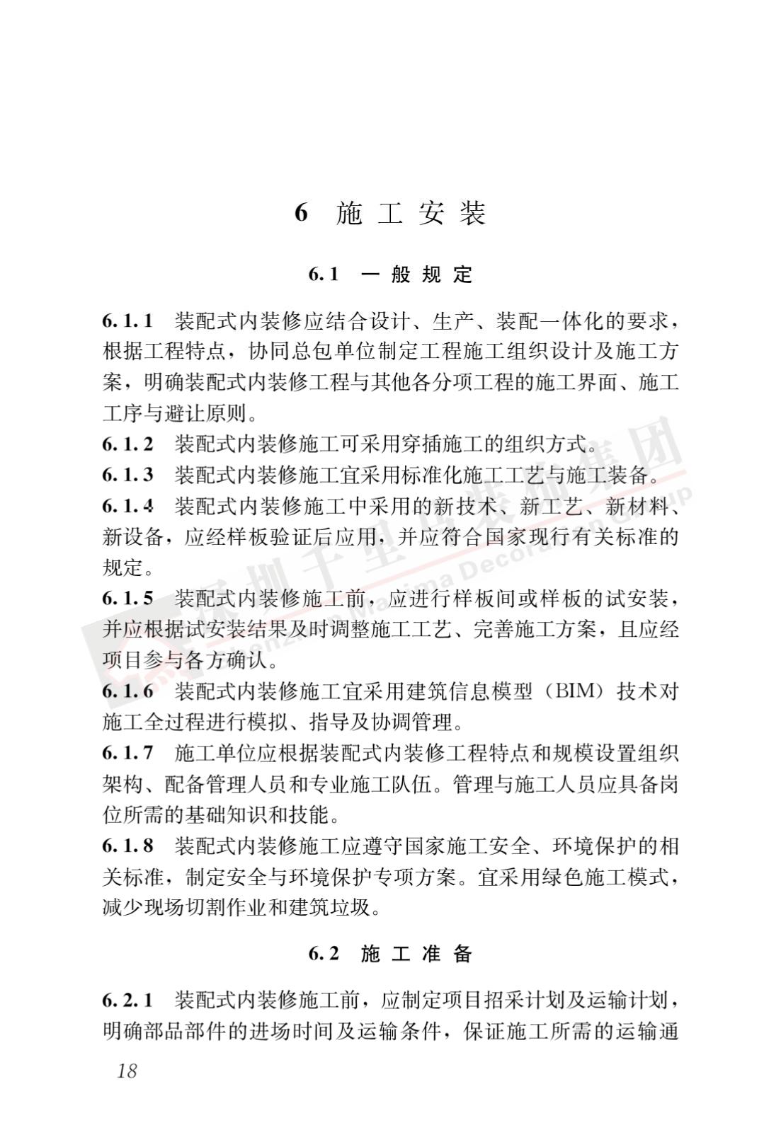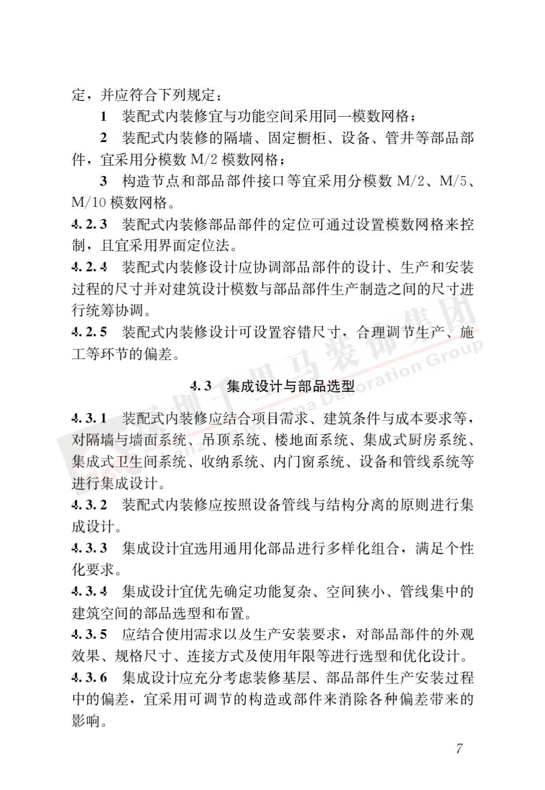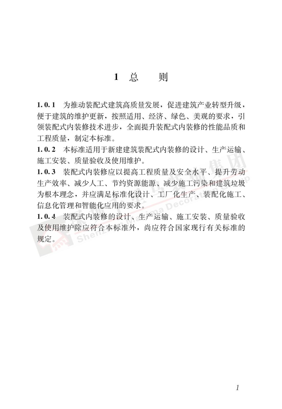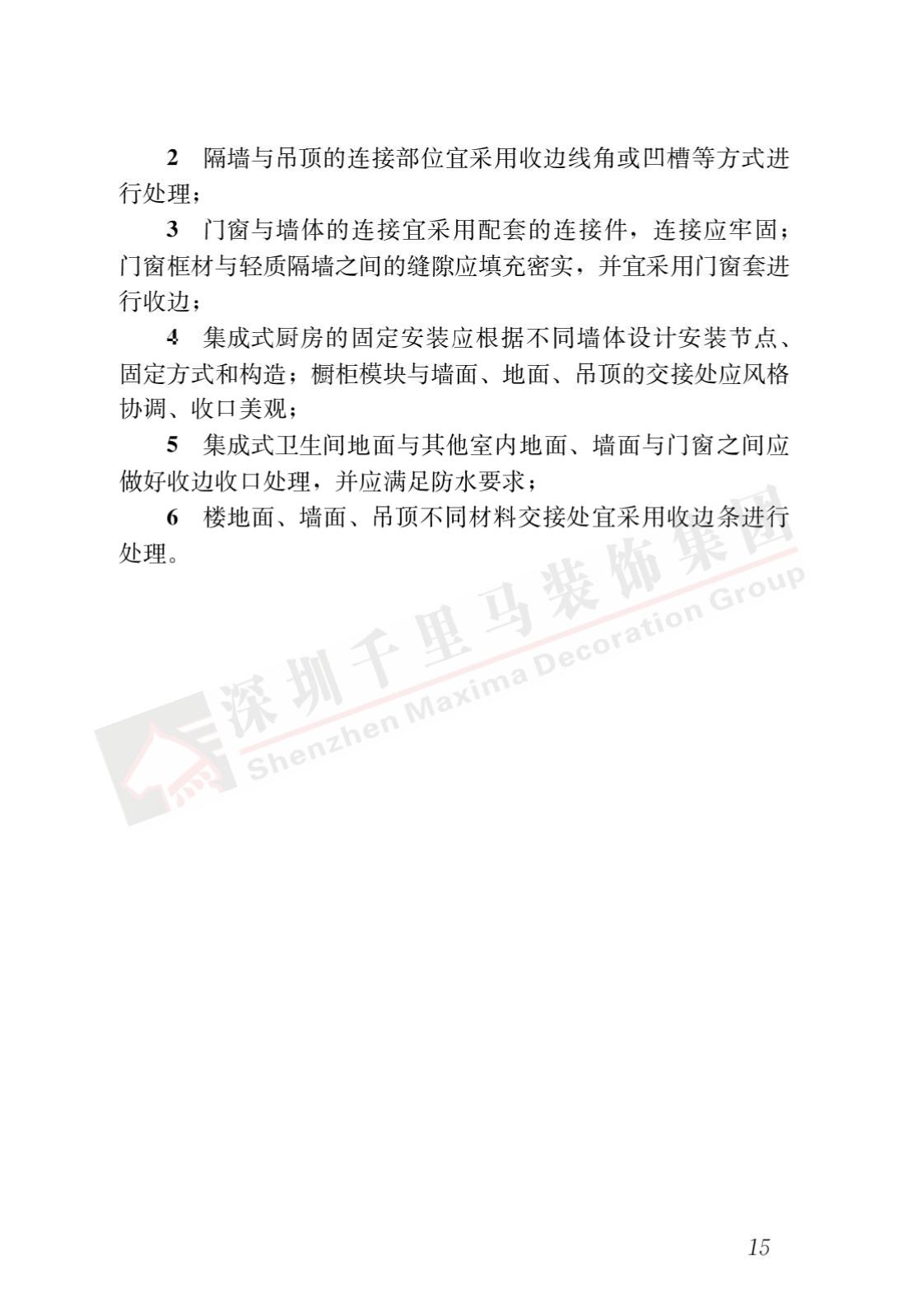 裝配式內裝修的設計、生產運輸、施工安裝、質量驗收及使用維護,除應符合本標準外,尚應符合國家現行有關標準規定。