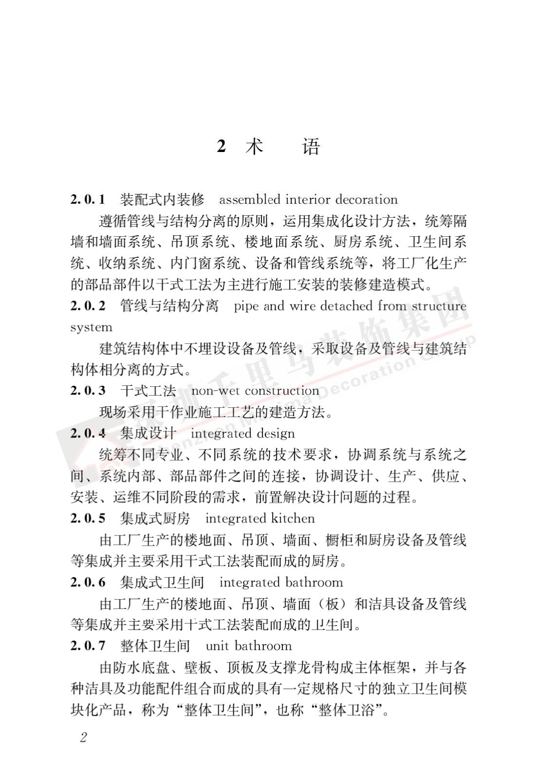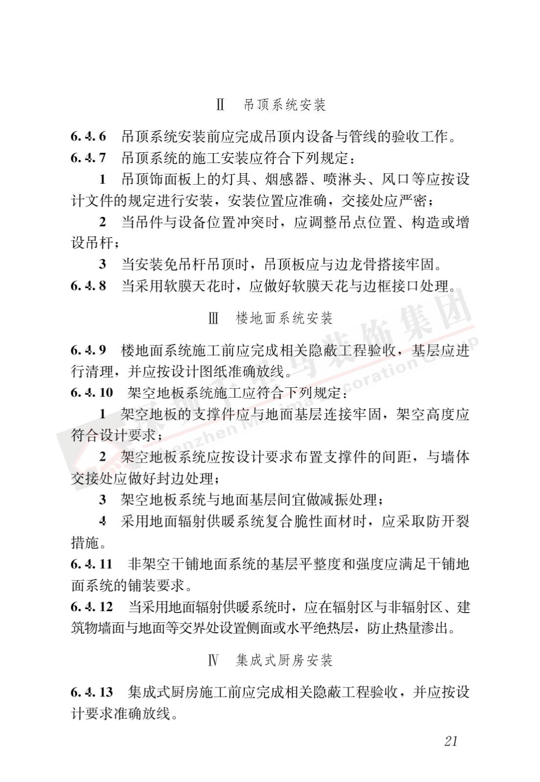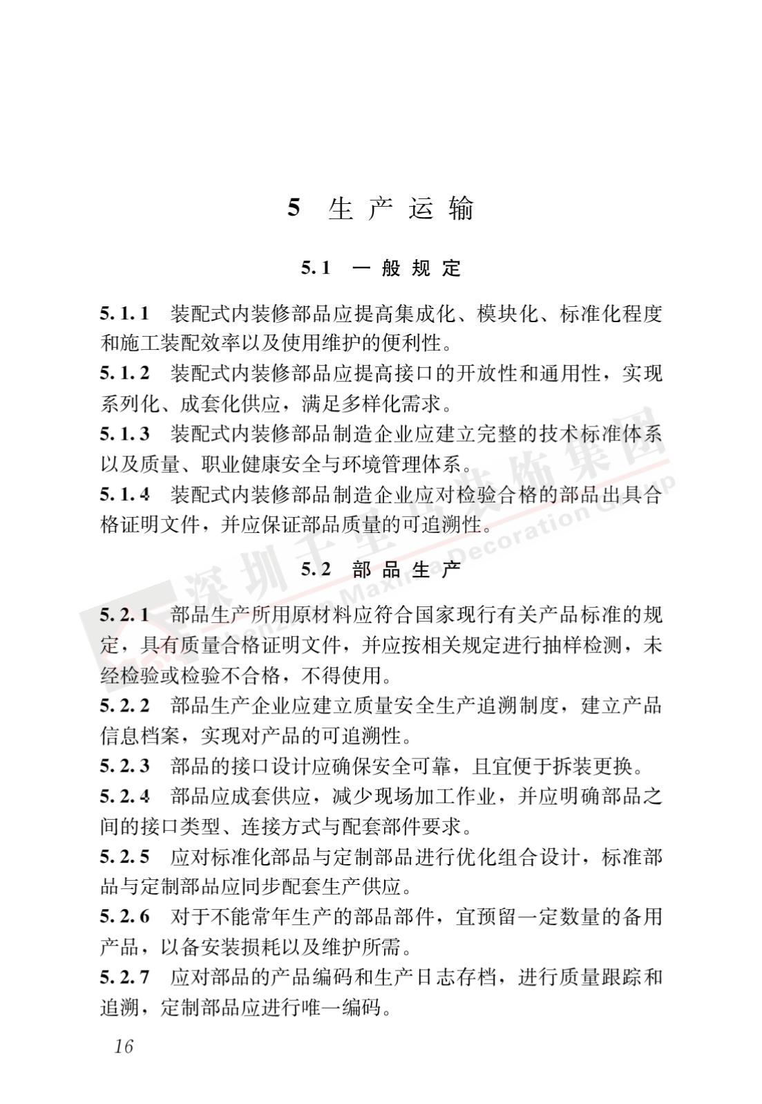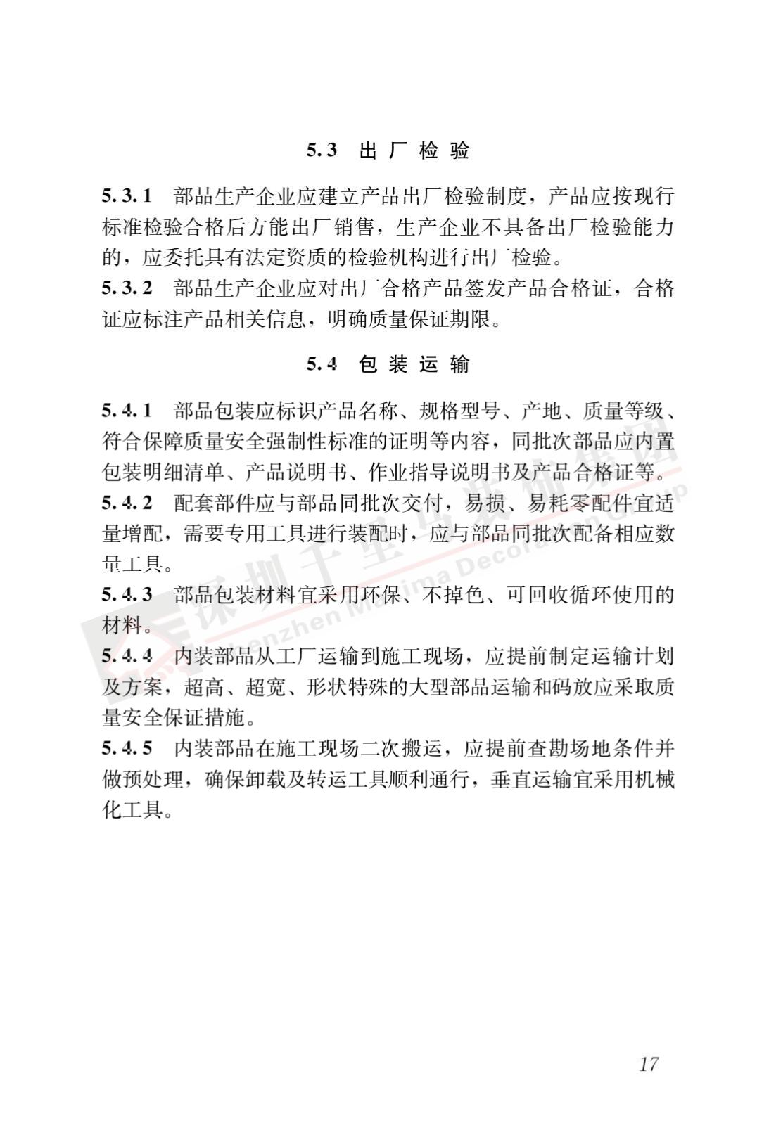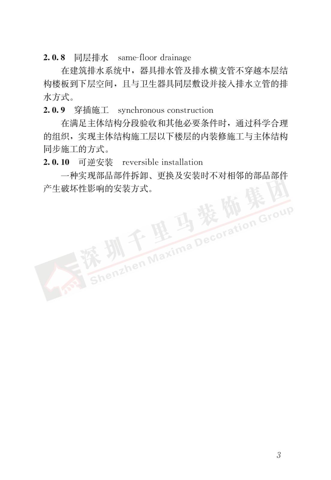 裝配式內裝修的設計、生產運輸、施工安裝、質量驗收及使用維護,除應符合本標準外,尚應符合國家現行有關標準規定。