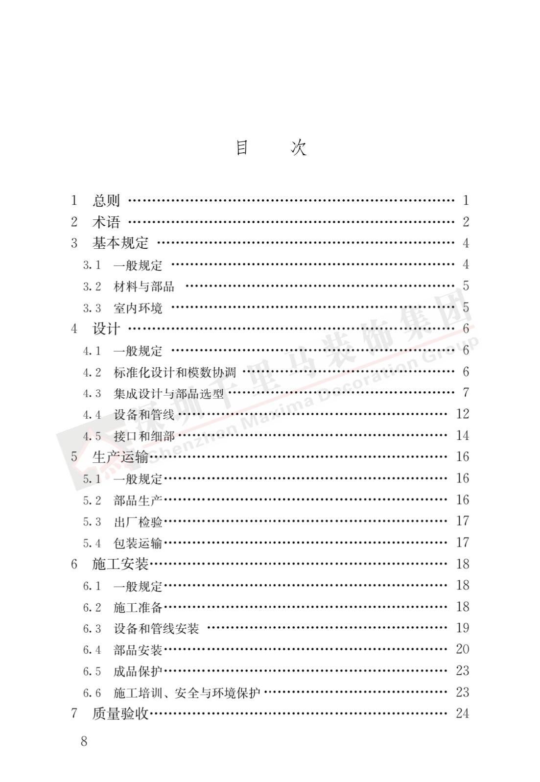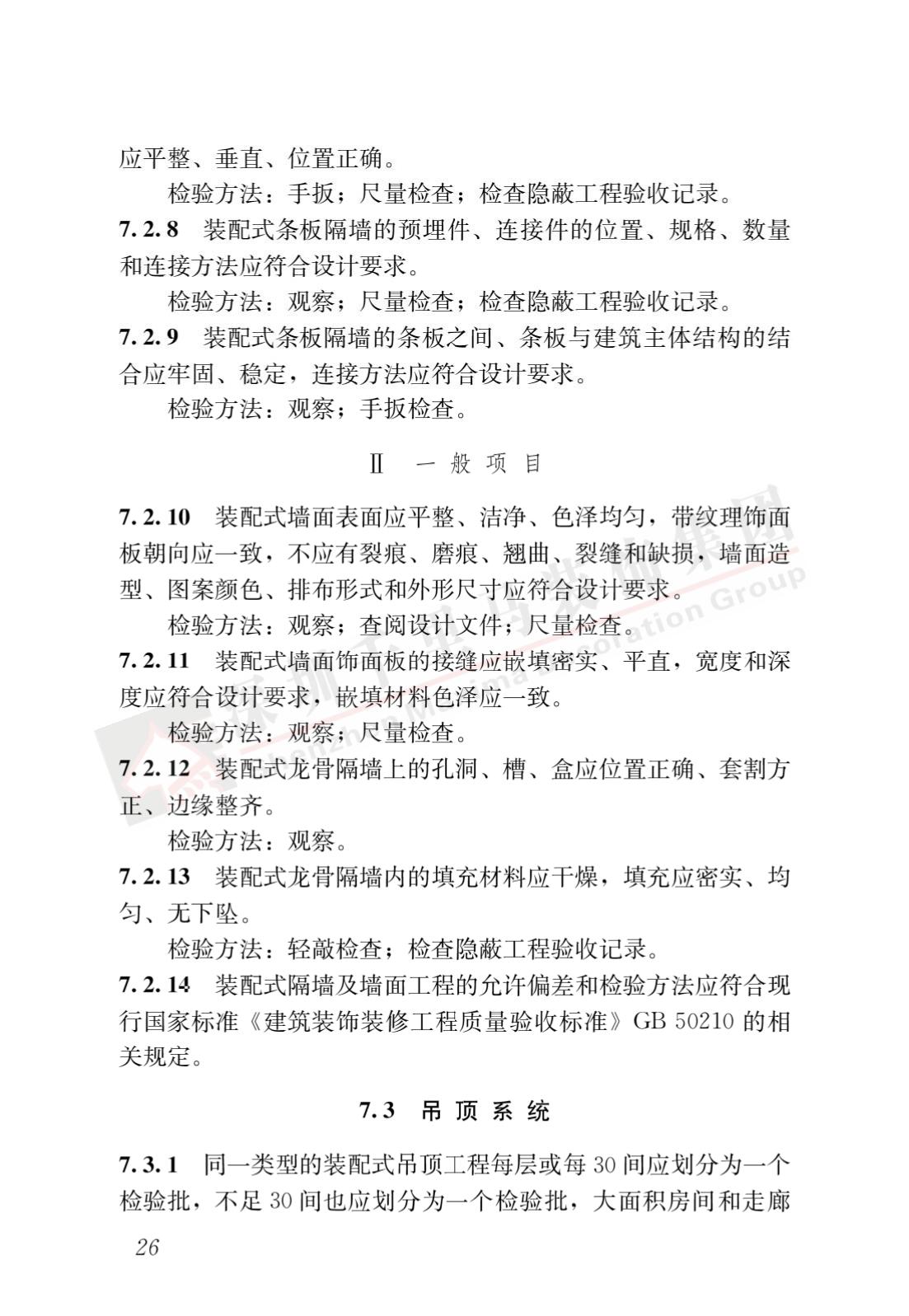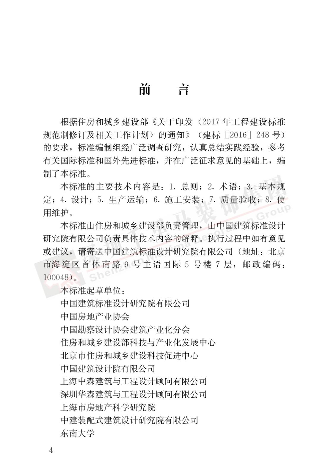 標準適用于新建建筑裝配式內裝修的設計、生產運輸、施工安裝、質量驗收及使用維護,主要技術內容包括總則、術語、基本規定、設計、生產運輸、施工安裝、質量驗收、使用維護。