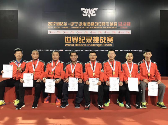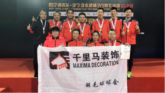 千里馬羽毛球會勇奪“2017道達(dá)爾李寧李永波杯3v3羽毛球賽世界紀(jì)錄挑戰(zhàn)賽”男團(tuán)35歲組和混團(tuán)35歲組亞軍,2017賽季完美收官