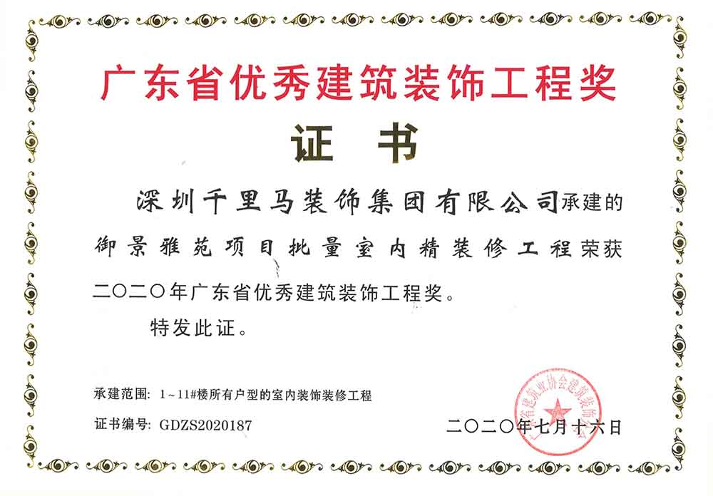 近日,由深圳千里馬裝飾集團承建的廣州獵德中心寫字樓、深圳創(chuàng)新智慧港寫字樓、東莞御景雅苑等項目紛紛榮獲2020年廣東省優(yōu)秀建筑裝飾工程獎。